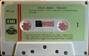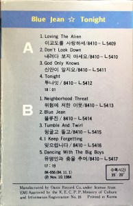 Side 1: Loving The Alien; Don’t Look Down; God Only Knows; Tonight.