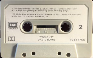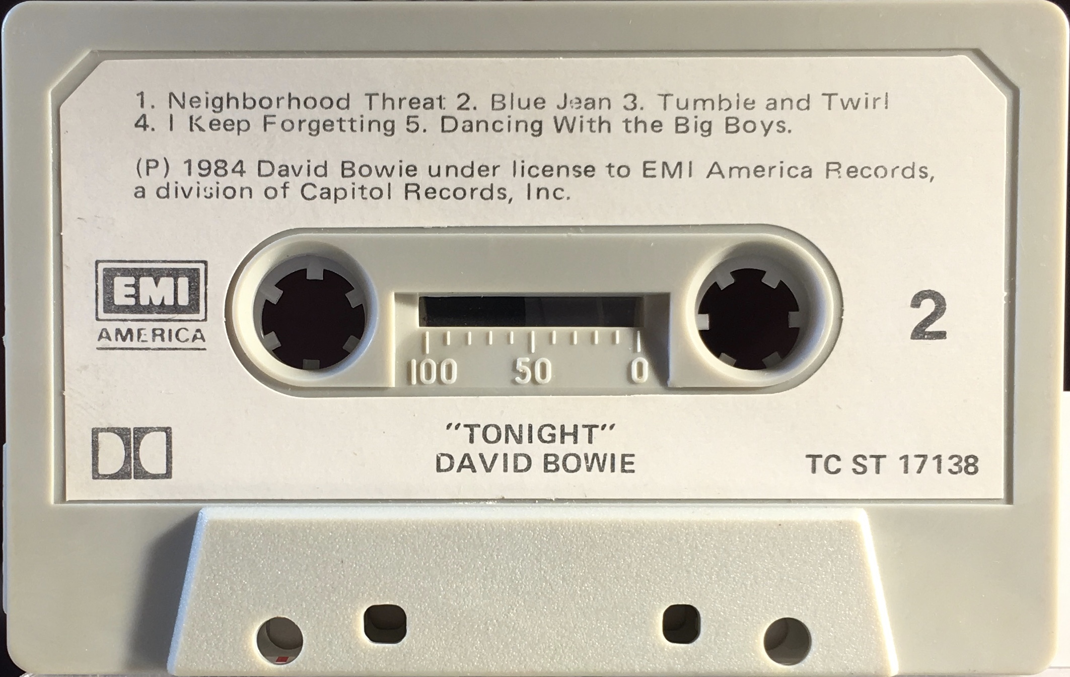 Side 1: Loving The Alien; Don’t Look Down; God Only Knows; Tonight.