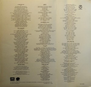 The cover has a black lower third, spine, and rear panel. White inside cover with full lyrics. The cover is thin, glossy folded paper. Track list on front cover and rear panel. The cassette came in a ‘DYNA’ stamped box. On the right side of the cover is printed ‘Includes Blue Jean, I Keep Forgetting; the cover, including the lyrics is a straight copy of the Philippine LP release.