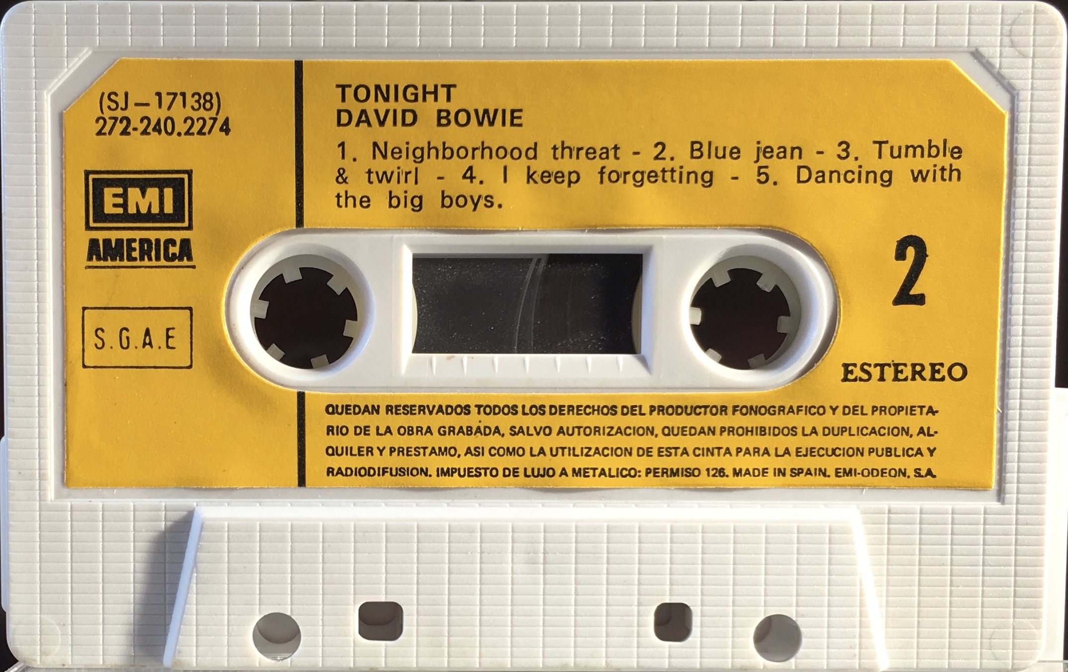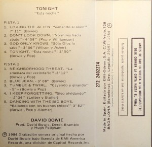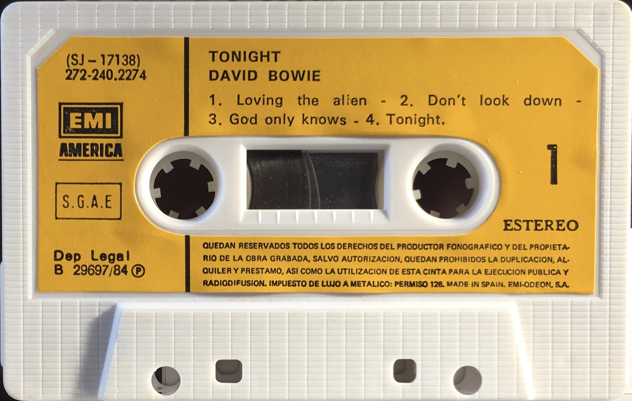Side 1: Loving The Alien; Don’t Look Down; God Only Knows; Tonight.