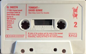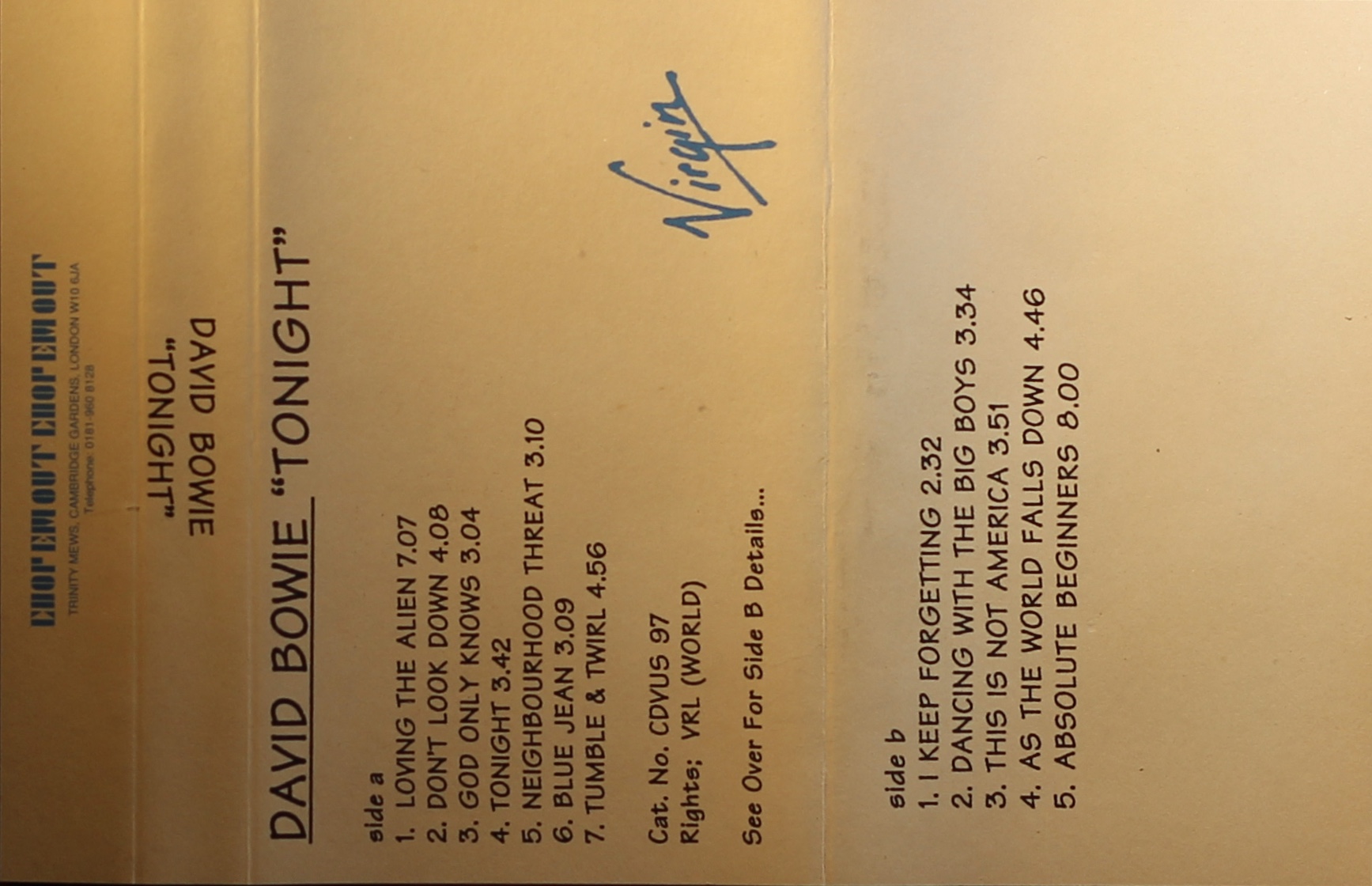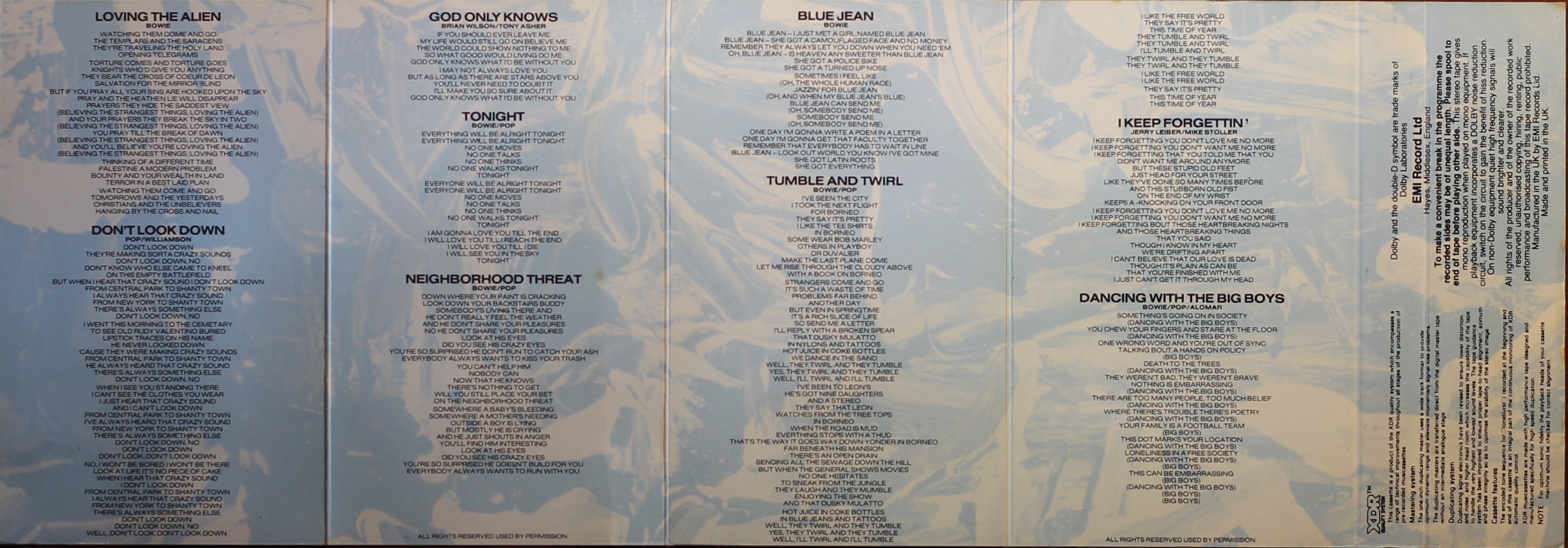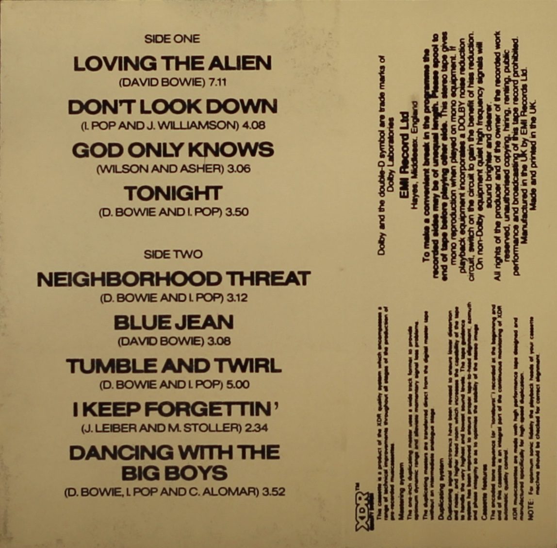 Side 1: Loving The Alien; Don’t Look Down; God Only Knows; Tonight.