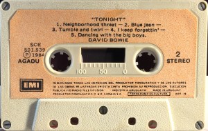 Side 1: Loving The Alien; Don’t Look Down; God Only Knows; Tonight.