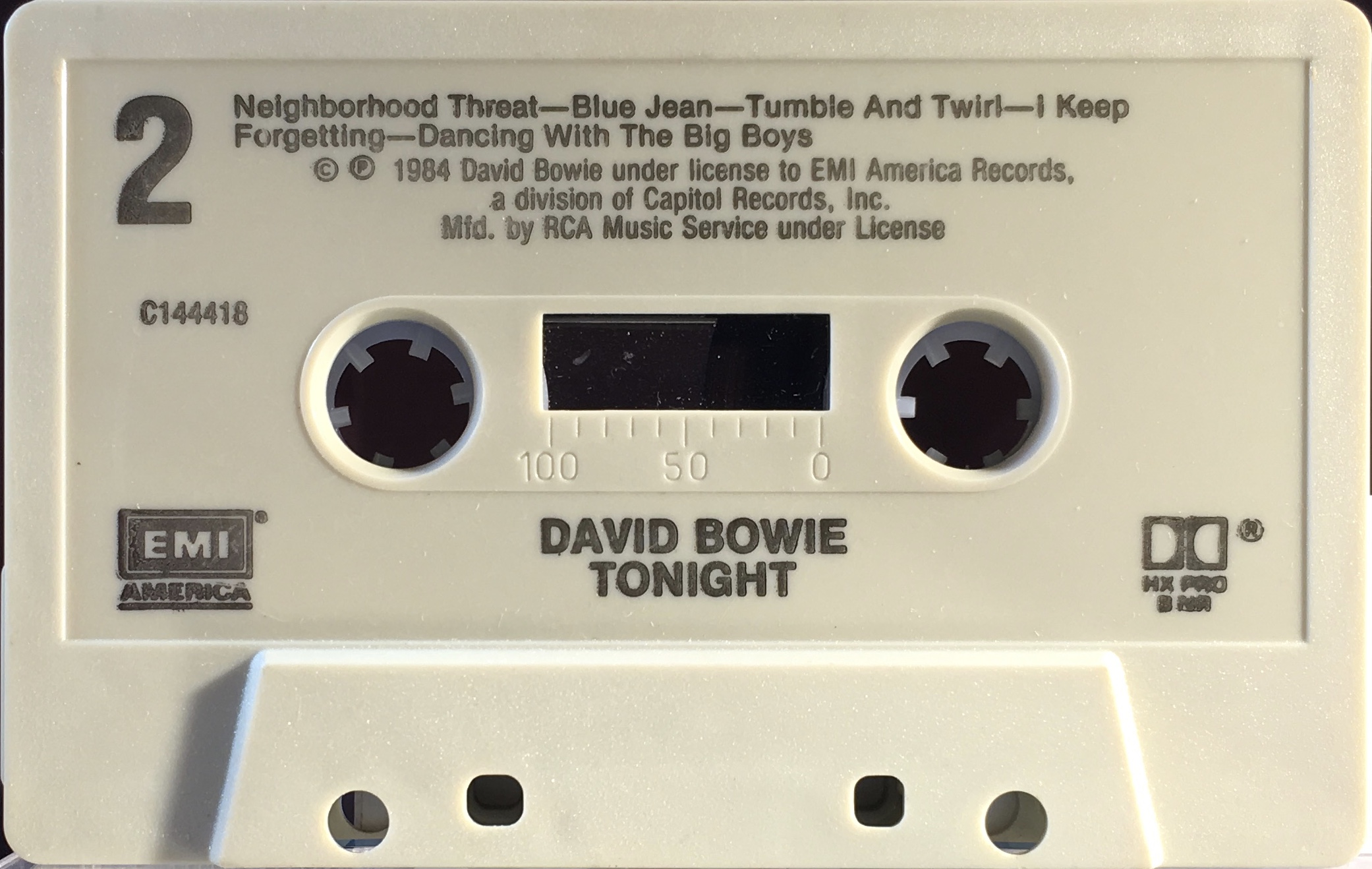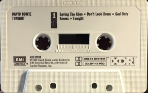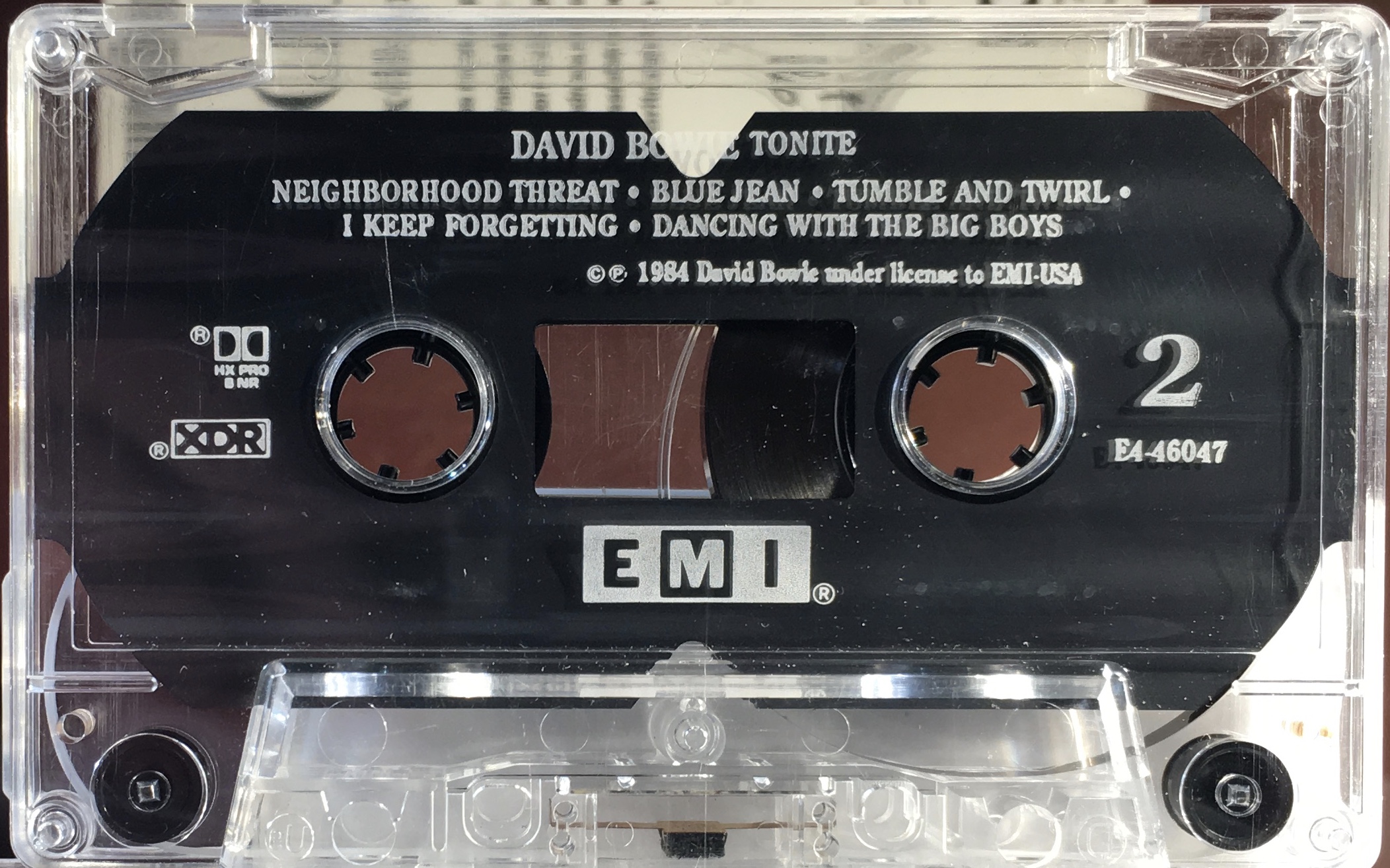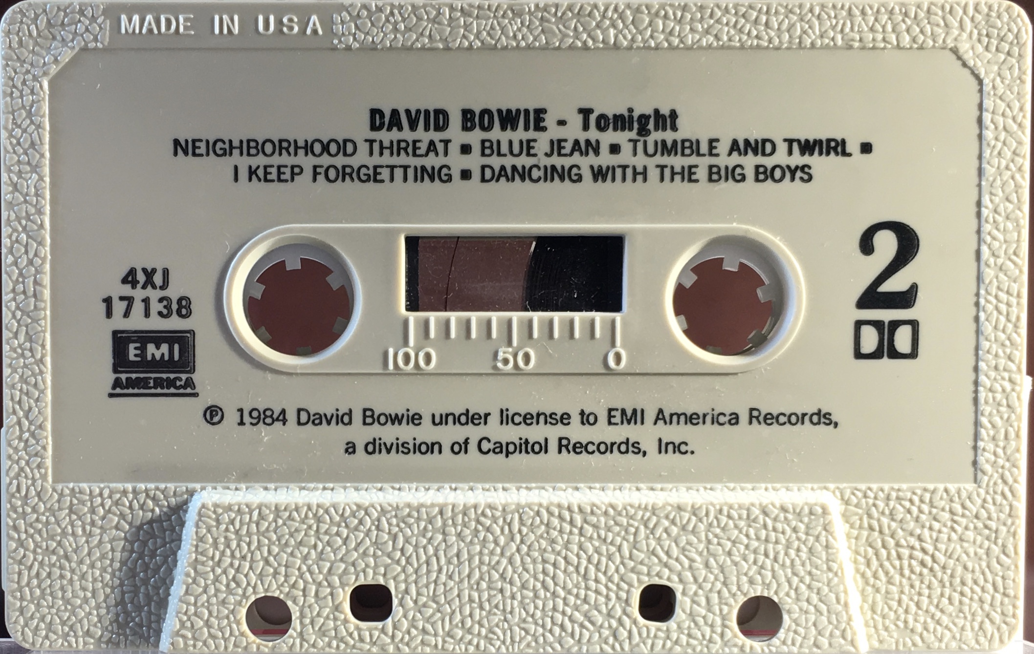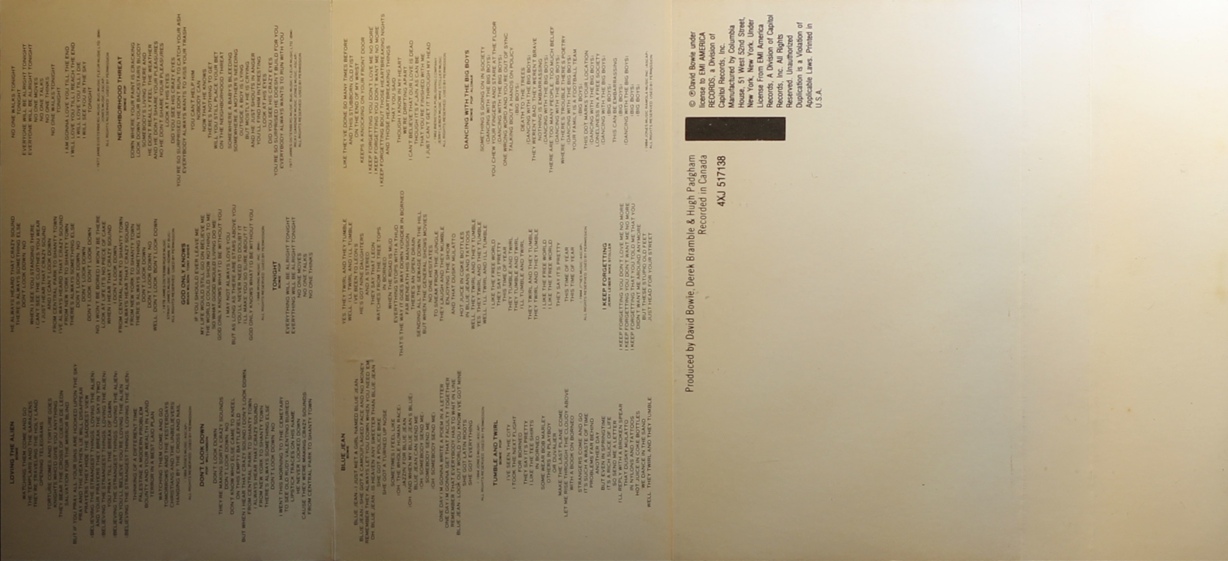 Side 1: Loving The Alien; Don’t Look Down; God Only Knows; Tonight.
