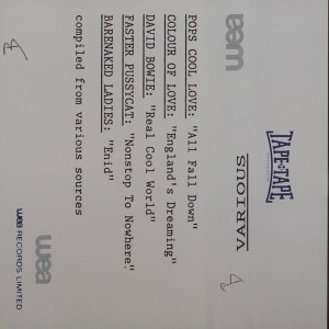 Unmarked reference tape from WEA by ‘ Tape To Tape’ Audio Duplication. Plain cover and unmarked transparent, smoked cassette. This London (UK) based company later changed its name to Heathmans Mastering.