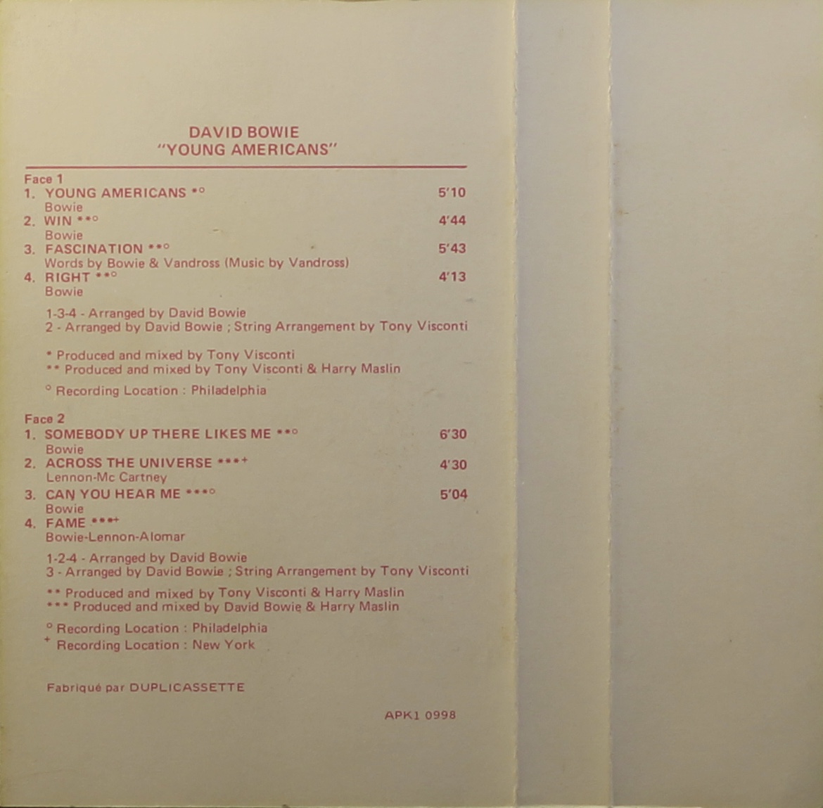 Titles are in English. The copyright information on both sides is in French, the cassette is stamped ‘Made In France’ with ‘SACEM’ rights stamp.