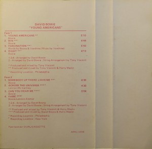 Side 2: Somebody Up There Likes Me; Across The Universe; Can You Hear Me; Fame.