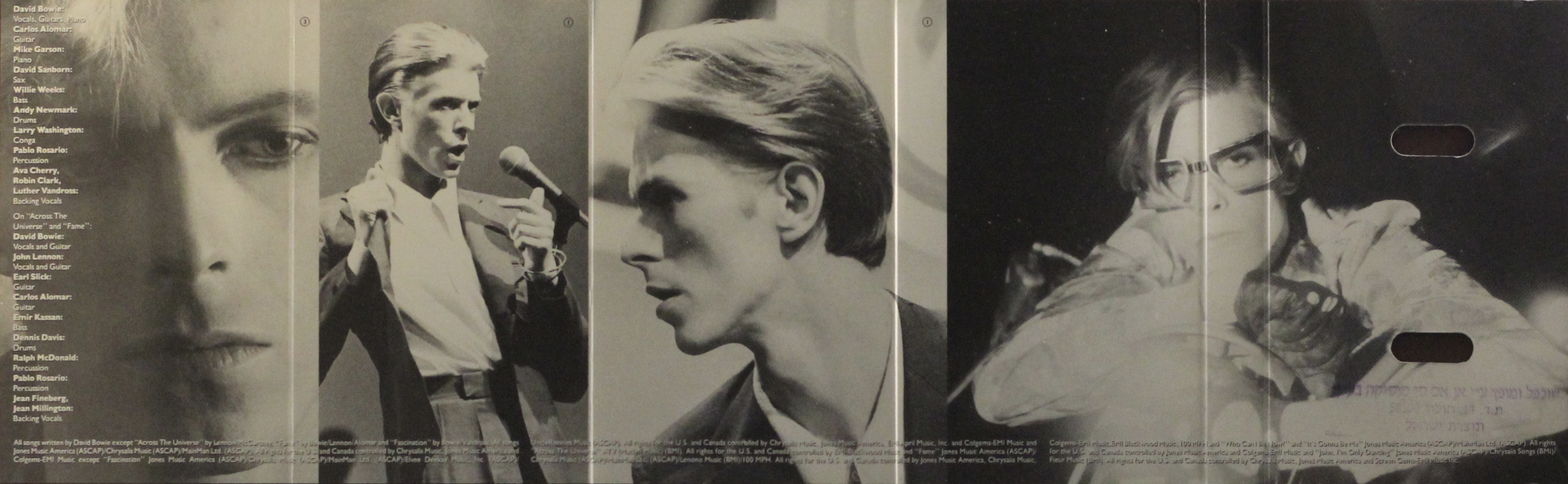 The track sequence has been slightly adjusted from the LP format so that tracks 1 and 2 from side 2 ‘Somebody Up There Likes Me’ and ‘Across The Universe’ have been added as the last tracks on side 1 to give room for the bonus tracks: ‘Who Can I Be Now’, ‘It’s Gonna Be Me’ and, ‘John I’m Only Dancing Again’.