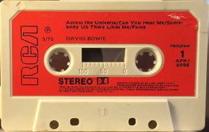 Side 2: Across The Universe; Can You Hear Me; Somebody Up There Likes Me; Fame.