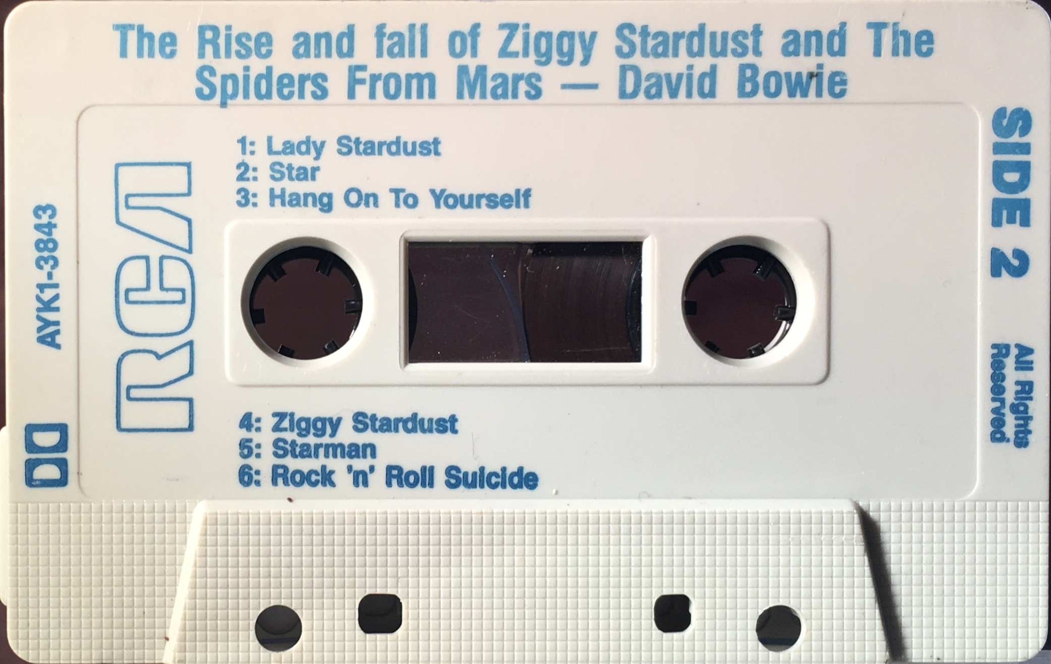 Side 2: Lady Stardust; Star; Hang On To Yourself; Ziggy Stardust; Starman; Rock ‘n’ Roll Suicide.