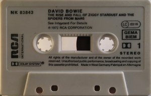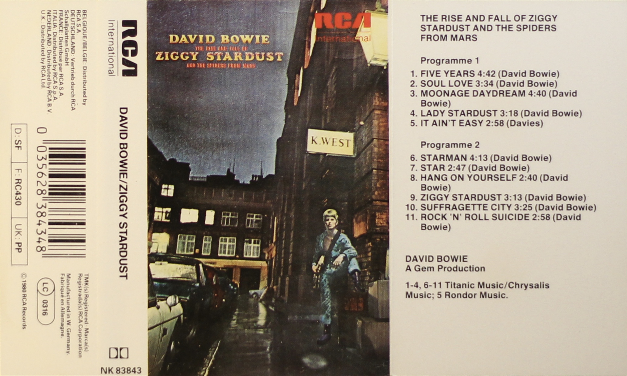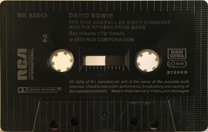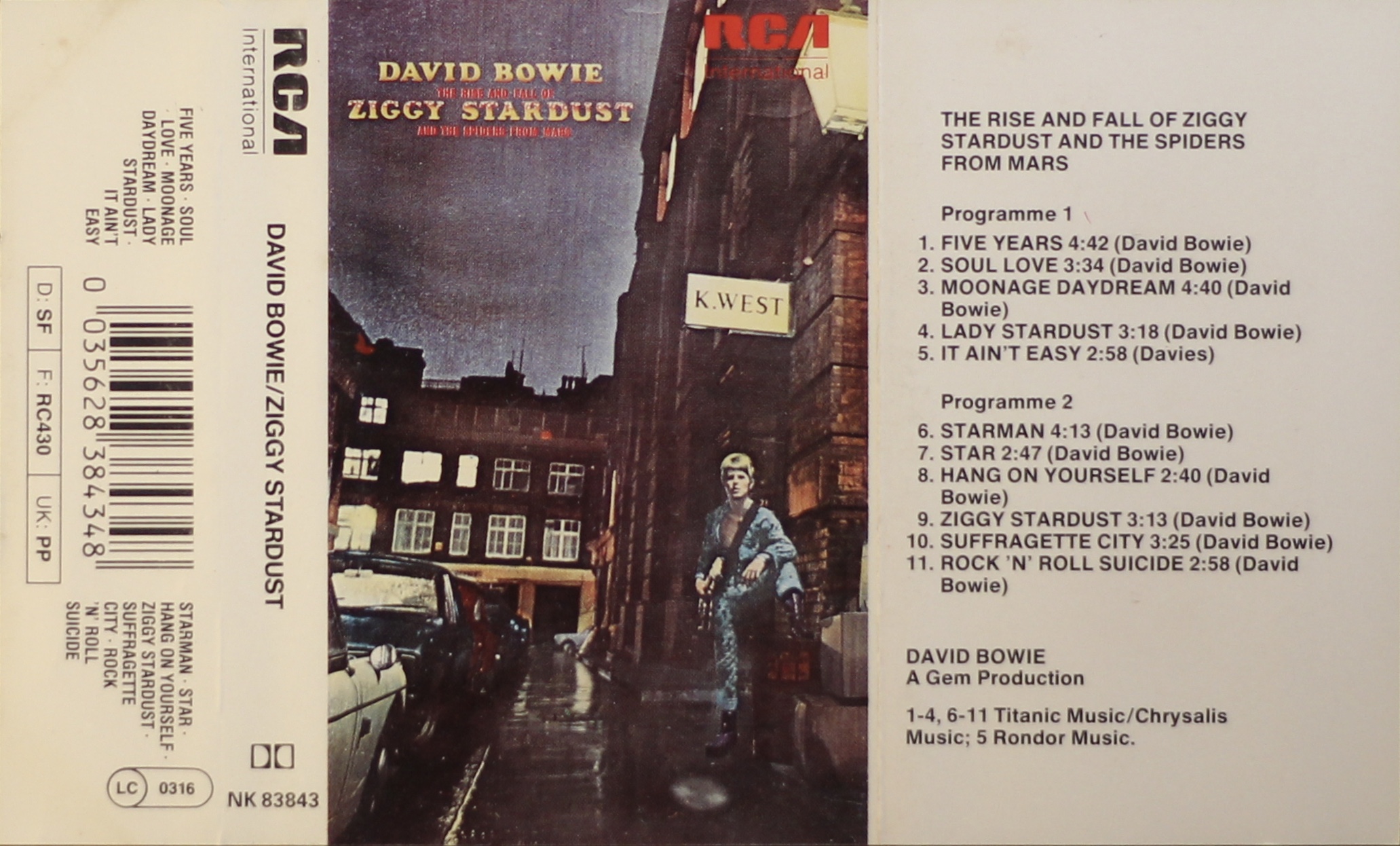 Side 2: Starman; Star; Hang On To Yourself; Ziggy Stardust; Suffragette City; Rock ‘N’ Roll Suicide.