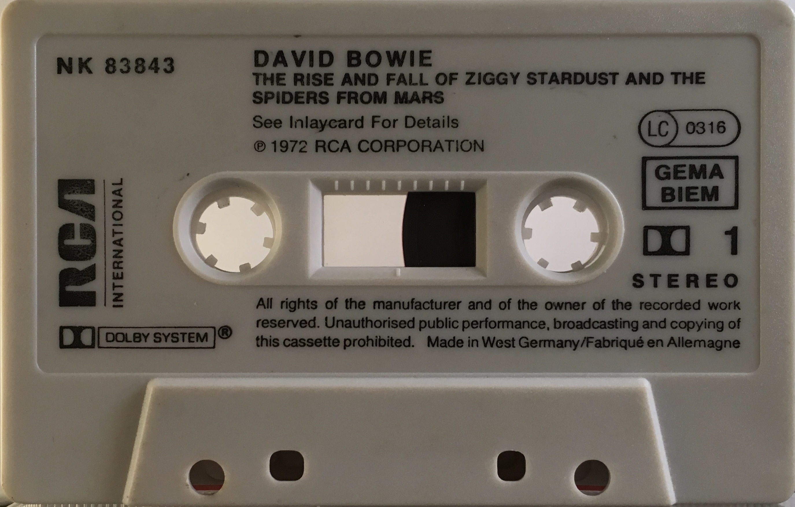 Black ink printed directly onto white shell. The mechanical rights society ‘BIEM’ appears below GEMA (German copyright collection agency) on the cassette and the rear cover has no track list on it. No Label Code on the spine, it appears on the rear cover.