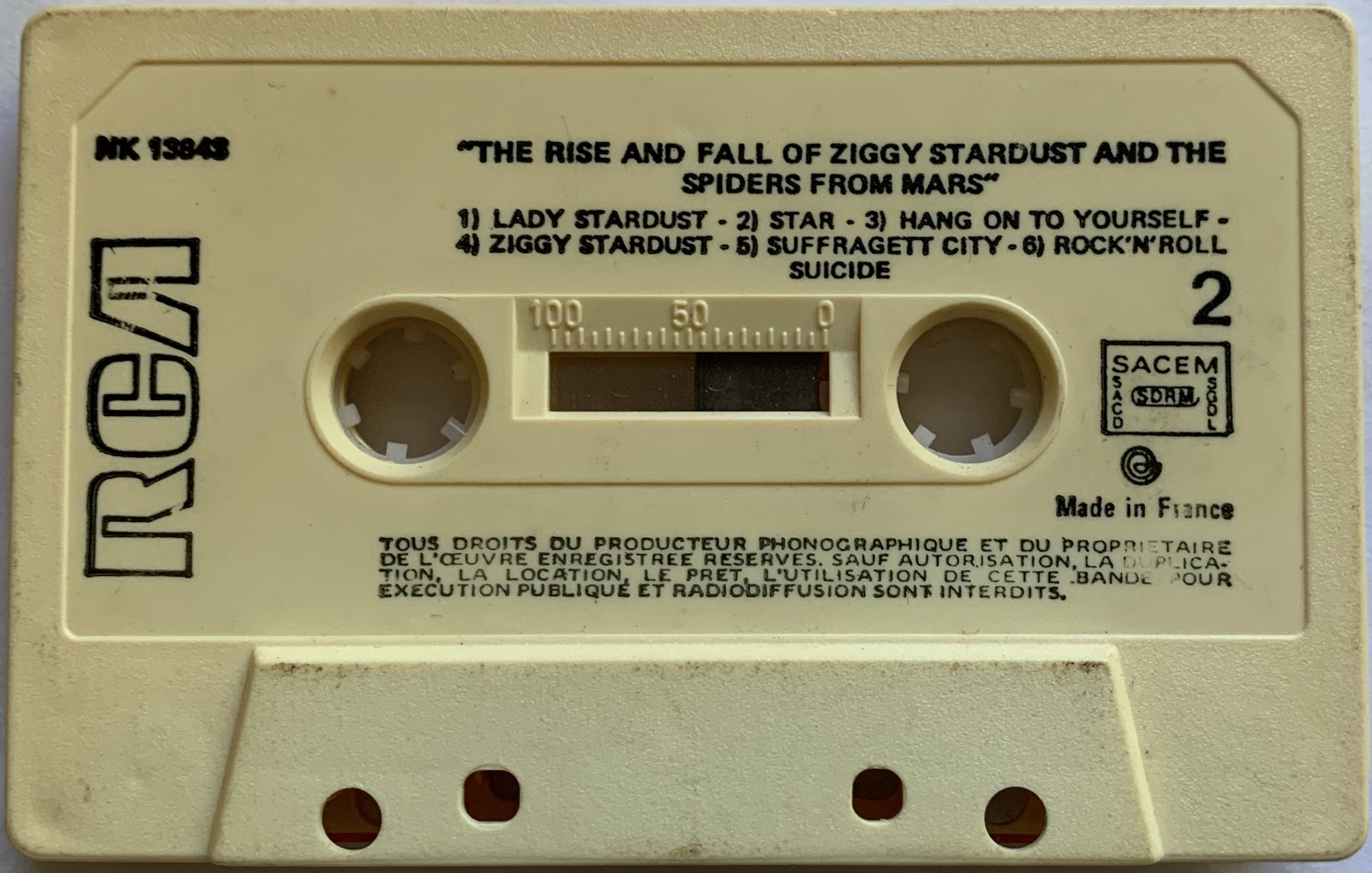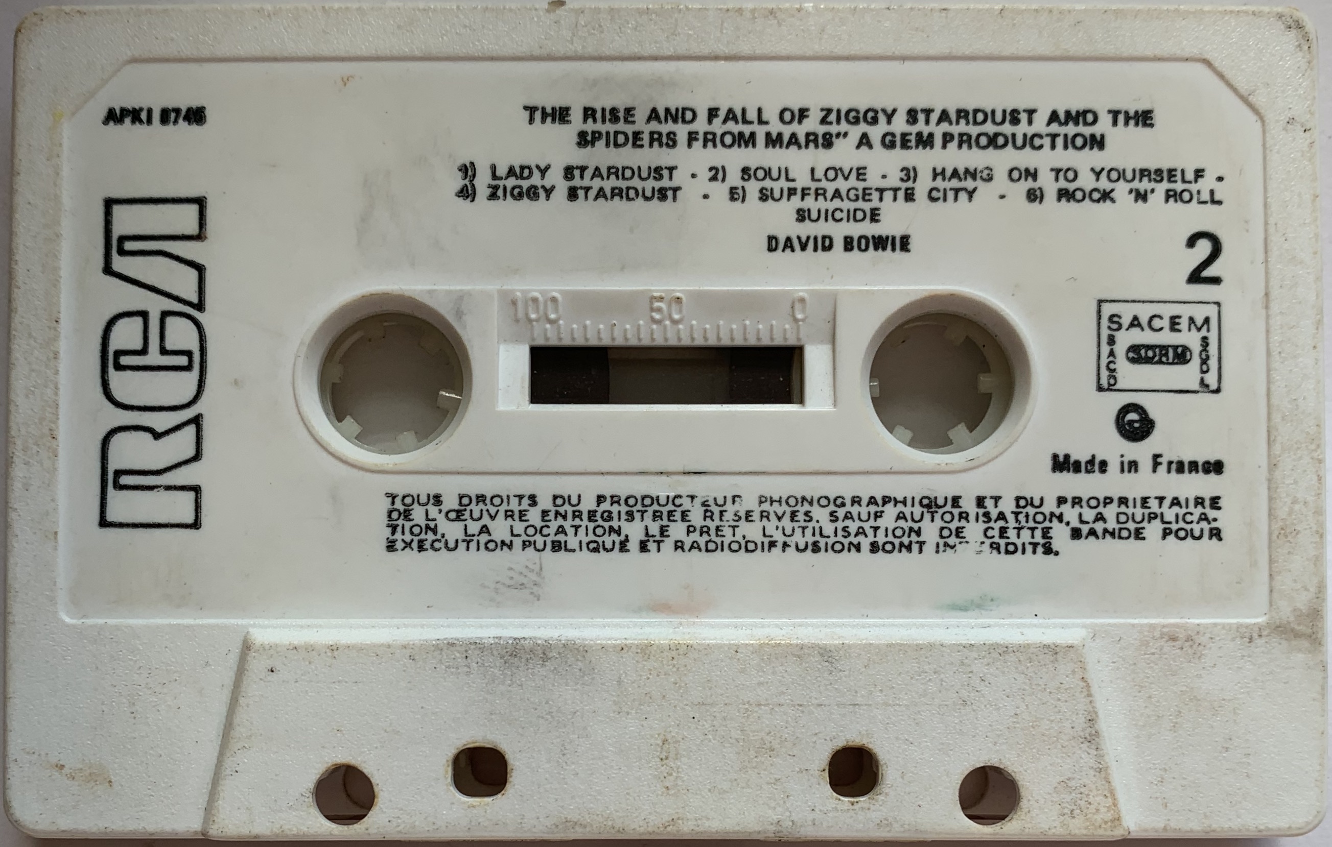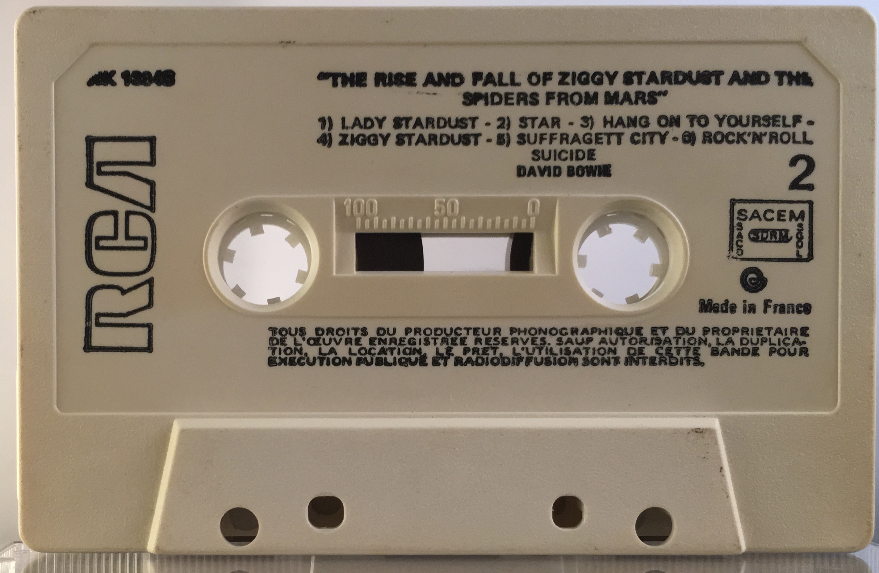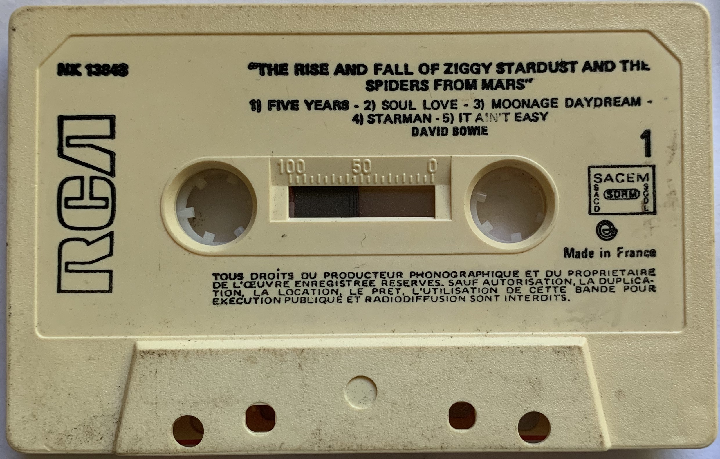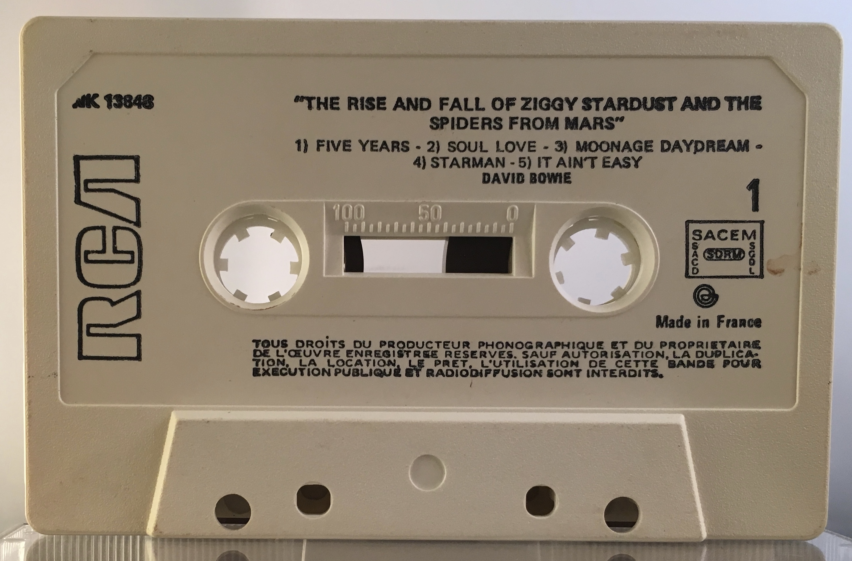 Titles are in English. The copyright information on both sides is in French, the cassette is stamped ‘Made In France’.