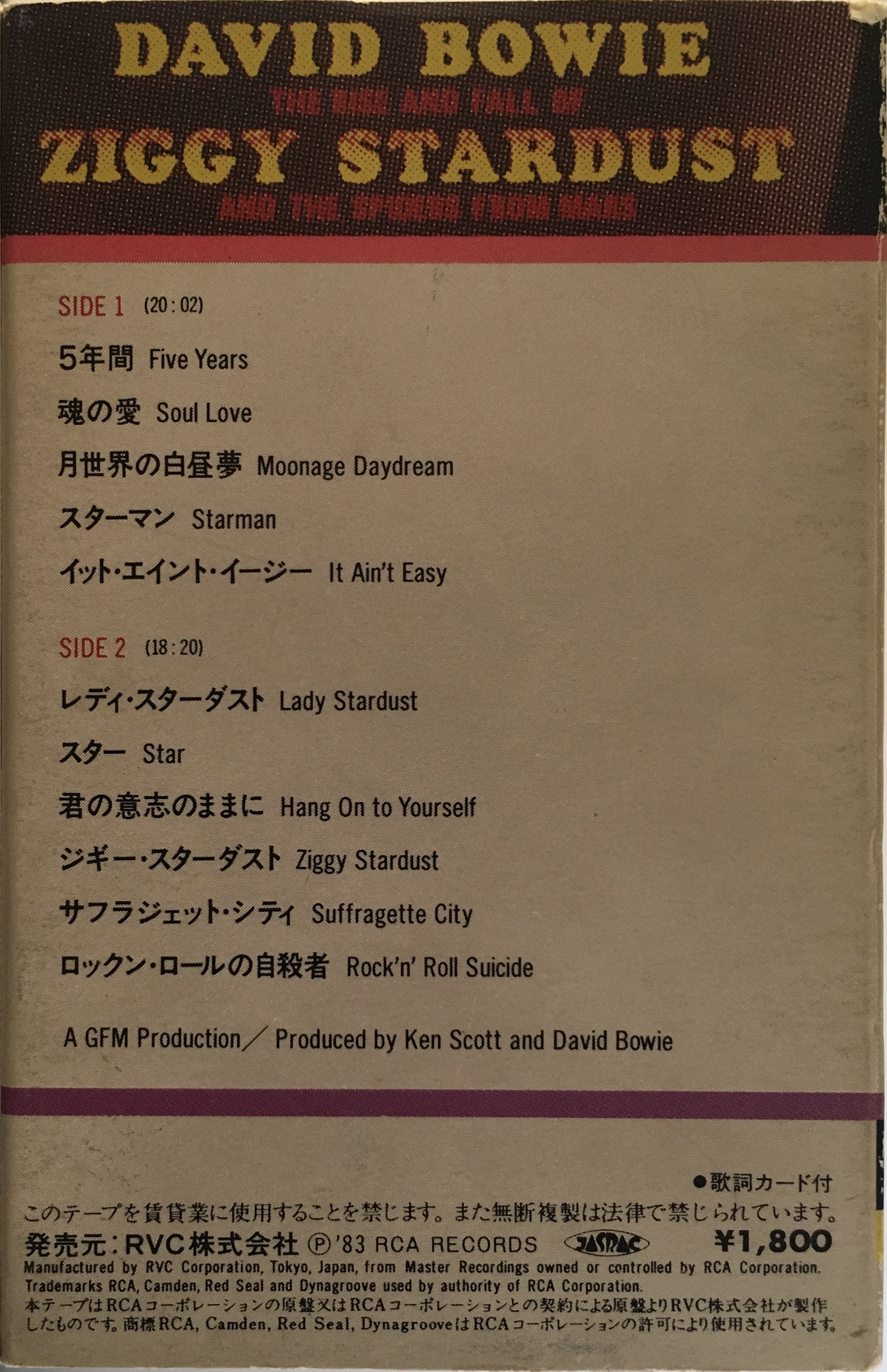 The Rise And Fall Of Ziggy Stardust And The Spiders From Mars; Japan; RCA; RPT-2102 (AYK1-3843); 1983.
