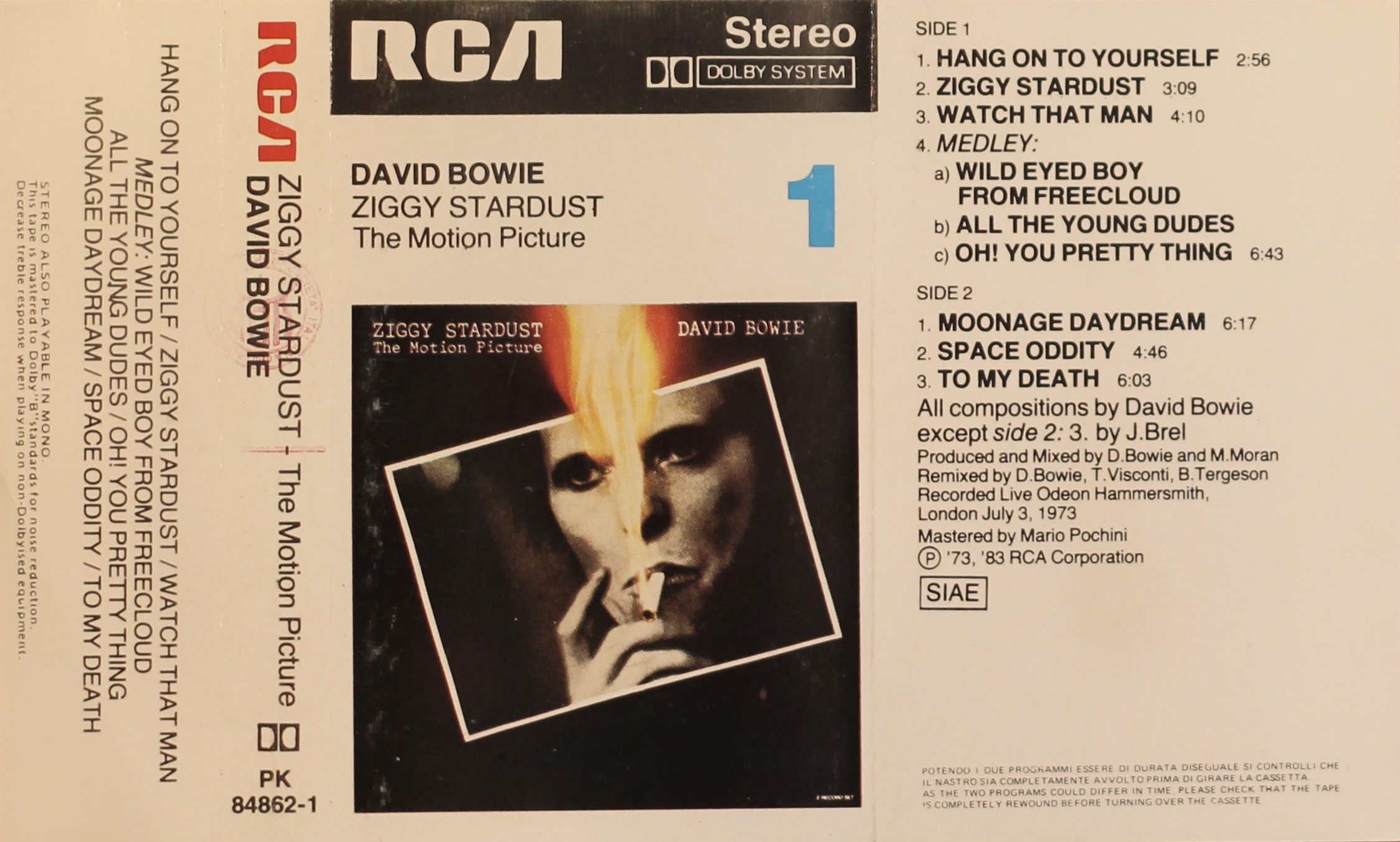 Ziggy Stardust – The Motion Picture: Italy; RCA, PK 84862-1; 1983.