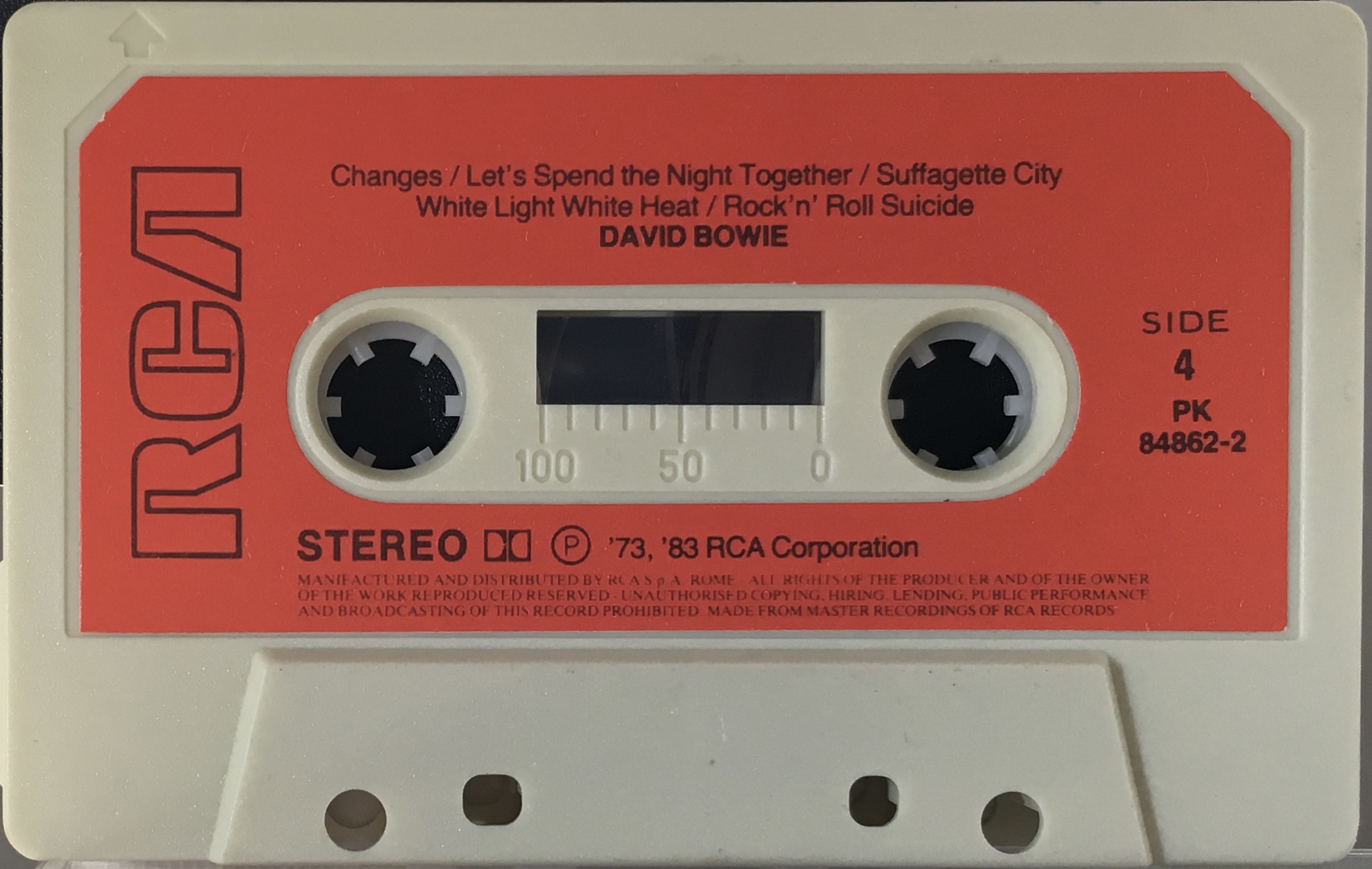 Side 2: Changes; Let’s Spend The Night Together; Suffragette City; White Light/ White Heat; Rock ‘N’ Roll Suicide.